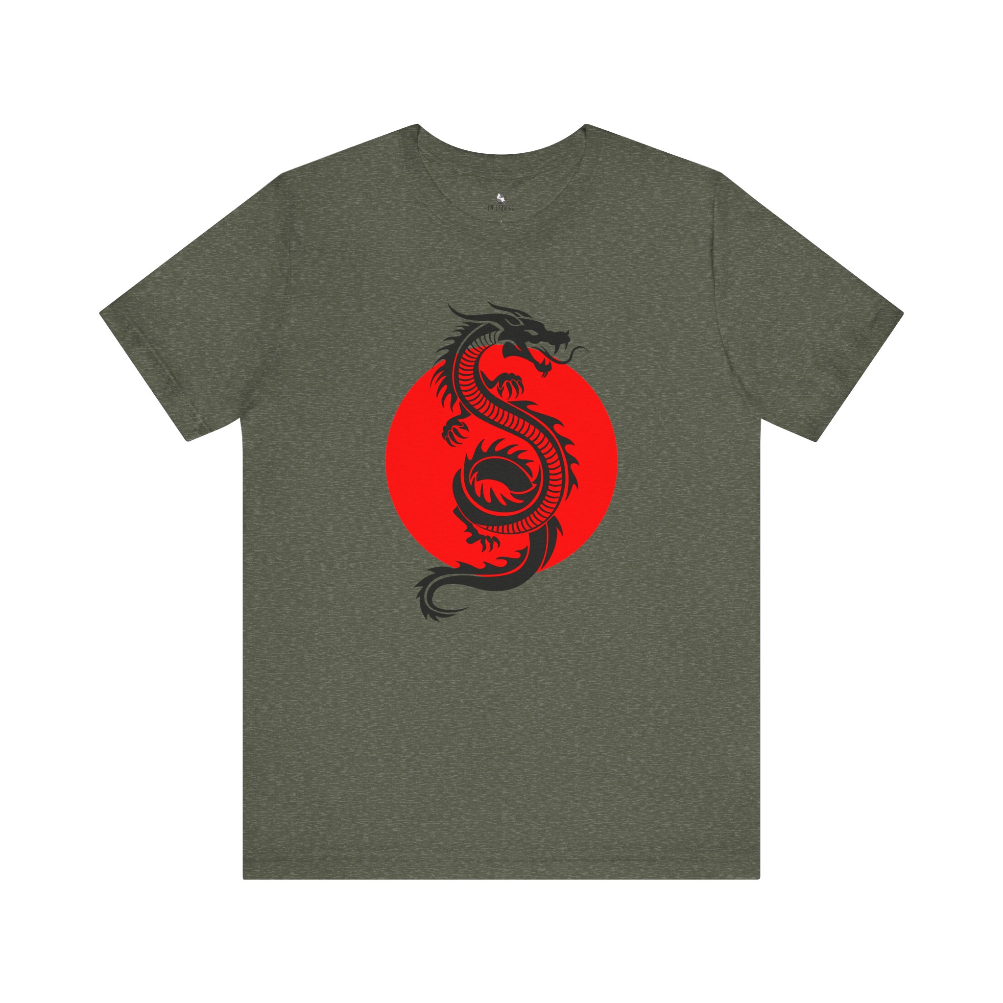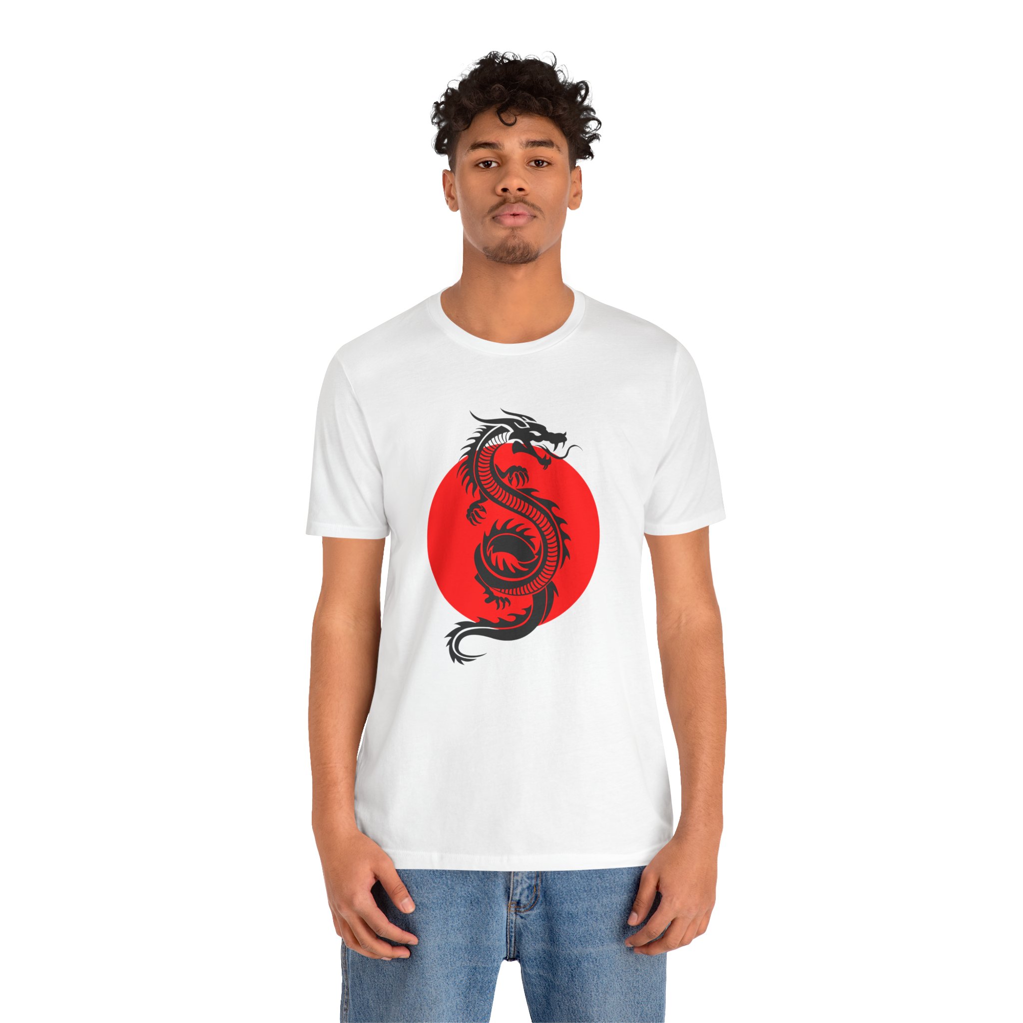 Introducing our stylish Men’s Jersey Short Sleeve Tee, a perfect blend of comfort and cool. Made from 100% Airlume combed and ring-spun cotton, this lightweight tee is ideal for all-day wear, whether you’re conquering your to-do list or enjoying a laid-back weekend. The striking design featuring a dragon and a bold red circle gives it a unique flair, making it a statement piece for anyone looking to express their individuality.